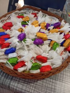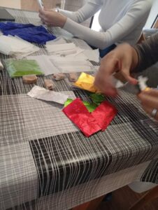 Vjeroučiteljica Mirjana Karatović sa svojom vjeronaučnom skupinom pokazala je kako se prave salon bomboni. U izradi su svi uživali i poslije su se osladili bombonima.